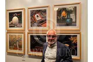 PACHUCA, HIDALGO,25AGOSTO2023.- El fotógrafo Adrián Mendieta durante la inauguración de su exposición “Iluminaciones” en el Museo de la Minería, anoche, como parte del 24 Encuentro Nacional de Fototecas. FOTO: ANA LUISA ANZA/CUARTOSCURO.COM