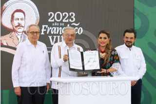 ACAPULCO, GUERRERO, 25AGOSTO2023.- Andrés Manuel López Obrador, presidente de México, junto a Evelyn Salgado, gobernadora de Guerrero; Jorge Alcocer Varela, secretario de Salud, y Zoé Robledo, director general del IMSS, encabezaron la firma con el gobierno de Guerrero el convenio de adhesión del sistema de salud estatal al Órgano Público Descentralizado (OPD) IMSS-Bienestar, a fin de garantizar atención médica para la población sin seguridad social en la región. FOTO: PRESIDENCIA/CUARTOSCURO.COM