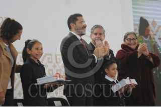 CIUDAD DE MÉXICO, 28AGOSTO2023. - Esta mañana millones de niños regresaron a su salón de clases para dar comienzo a un nuevo ciclo escolar el cual está protagonizado por la entrega de los nuevos libros de texto gratuito que provocaron distintas opiniones desde su presentación. En la primaria Escuela de Participación Ciudadana No 2, el jefe de Gobierno, Martí Batres, entregó de manera simbólica a dos alumnos sus nuevos libros para que comience su nuevo año escolar. FOTO: DANIEL AUGUSTO /CUARTOSCURO.COM