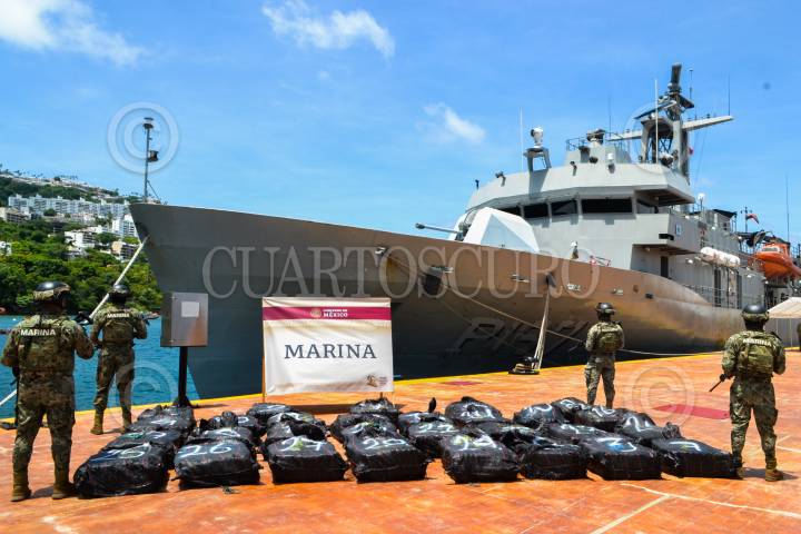 CIUDAD DE MÉXICO 28AGOSTO2023.- La Secretaría de Marina a través de la Armada de México, informa que, en días pasados, personal de esta Institución, aseguró, en dos acciones diferentes, tres embarcaciones con aproximadamente 4,400 (cuatro mil cuatrocientos) kilogramos de presunta cocaína, aproximadamente 5,300 (cinco mil trescientos) litros de combustible y logró la detención de 11 presuntos trasgresores de la ley, frente a costas del Pacífico mexicano. Cabe destacar que durante el presente mes se han asegurado un aproximado de 11,400 (once mil cuatrocientos) kilogramos de presunta cocaína, así como la detención de 23 presuntos trasgresores de la ley, de los cuales 18 son de nacionalidad mexicana. FOTO: SEMAR/CUARTOSCURO.COM