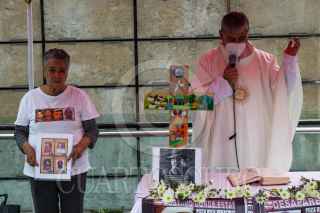CIUDAD DE MÉXICO, 28AGOSTO2023.- La activista María Herrera Magdaleno recordó a dos de sus cuatro hijos desaparecidos, hace 15 en una carretera en Guerrero, esto durante una protesta en las inmediaciones de la Estela de Luz, en donde hay placas de sus hijos Raúl y Jesús Salvador Trujillo Herrera. Exigió al gobierno federal una política real de búsqueda de las decenas de miles personas desaparecidas en México. FOTO: MOISÉS PABLO/CUARTOSCURO.COM