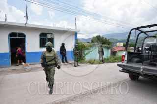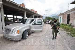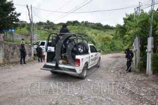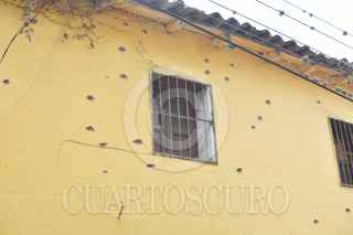 LEONARDO BRAVO, 28AGOSTO2023.- La madrugada de este lunes se registró un fuerte enfrentamiento entre grupos armados en Chichihualco, cabecera municipal de Leonardo Bravo. Esto orillo a las escuelas de la localidad a mantenerse cerradas y no dar inicio al ciclo escolar. Según versiones de pobladores, murieron alrededor de 7 personas. En un recorrido realizado esta mañana por calles principales se pudo verificar que había cientos de casquillos percutidos de balas de alto calibre, utilizadas en rifles AK-47 y AR-15. Varias casas resultaron baleadas de manera directa o circunstancial. Una vivienda cuya fachada es color amarillo fue la más afectada con decenas de balazos que se presume fueron de manera directa. Versiones señalan que el inmueble es propiedad del exalcalde de Leonardo Bravo, Leopoldo Cabrera Chávez. Otras casas y negocios, como la sucursal de Banco Azteca, tienen disparos en la fachada. FOTO: DASSAEV TÉLLEZ/CUARTOSCURO.COM