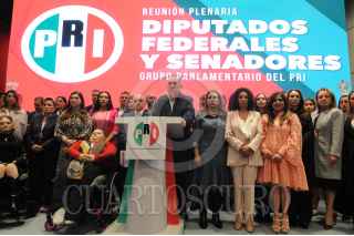 CIUDAD DE MÉXICO, 29AGOSTO2023.- Este martes dio inicio la reunión plenaria del PRI encabezada por legisladores del organismo político, los diputados Rubén Moreira, Carolina Viggiano y el senador Manuel Añorve, dieron una conferencia de prensa previo al inicio de la reunión. FOTO: DANIEL AUGUSTO /CUARTOSCURO.COM