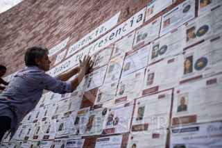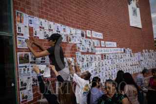 ZACATECAS, ZACATECAS, 29AGOSTO2023.- Madres y familiares de desaparecidos de la Unión de Colectivos de Buscador@s de Personas Desaparecidas realizaron una pega de cientos de fichas en el “Muro de la Memoria” del centro de la capital zacatecana, ubicado en la Plazuela Bicentenario. Hasta el mes de julio de 2023 se contabilizaron más de 3,700 desaparecidos en el estado. FOTO: ADOLFO VLADIMIR /CUARTOSCURO.COM