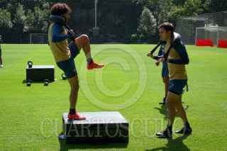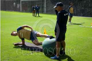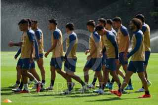 CIUDAD DE MÉXICO, 30AGOSTO2023.- Los Pumas de la UNAM con sus jugadores referentes como; el Chino Huerta y Juan Dinenno, realizaron el entrenamiento del primer equipo en la sede de Cantera previo a su enfrentamiento con su similar del Santos Laguna, los dirigidos por el Turco Mohammed viajarán a Torreón para diputar el partido correspondiente a la jornada 6 de la Liga Mx. FOTO: ROGELIO MORALES /CUARTOSCURO.COM