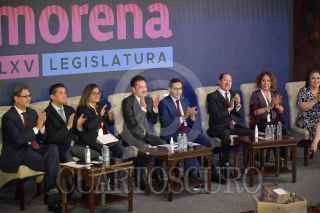 CIUDAD DE MÉXICO, 31AGOSTO2023.- Rogelio Ramírez de la O, secretario de Hacienda y Crédito Público, durante su participación en la Quinta Reunión Plenaria del grupo parlamentario de Morena correspondiente al último año se ejercicio constitucional de la LXV Legislatura de la Cámara de Diputados. Estuvieron presente Ignacio Mier, diputado y coordinador de Morena; Leonel Godoy, y Aleida Alavez. FOTO: MARIO JASSO/CUARTOSCURO.COM