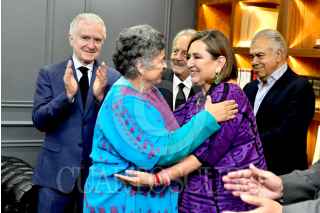 CIUDAD DE MÉXICO, 31AGOSTO2023.- Xóchitl Gálvez sostuvo un encuentro con Beatriz Paredes en la sede nacional del PRI, luego de que el día de ayer la segunda reconociera que no le favorecían las encuestas en las que se eligiría quién representará al Frente Amplio por México en su candidatura presidencial. Xóchitl Gálvez abrazo a las tlaxcalteca asegurando que el frente sigue en unidad. FOTO: PRI/CUARTOSCURO.COM