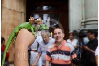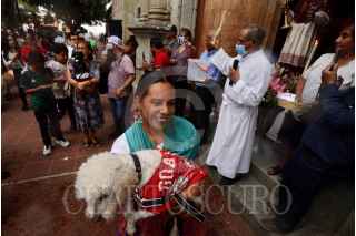 OAXACA, OAXACA, 31AGOSTO2023.- Al conmemorarse el día de San Ramón Nonato, católicos acuden al templo de la Virgen de la Merced en la capital de Oaxaca para bendecir a sus animales de compañía. Antiguamente llevaban animales de granja, pastoreo y carga, sin embargo con el paso de los años se ha ido modificando esta tradición. FOTO: CAROLINA JIMÉNEZ/CUARTOSCURO.COM