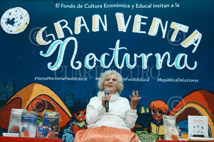 CIUDAD DE MÉXICO, 31AGOSTO2023.- La escritora Elena Poniatowska encabezó la Venta Nocturna de la Librería Rosario Castellanos. En el evento estuvieron presentes Paco Ignacio Taibo II y su esposa Paloma Saiz. FOTO: GRACIELA LÓPEZ /CUARTOSCURO.COM