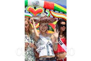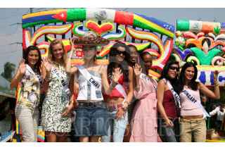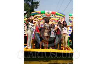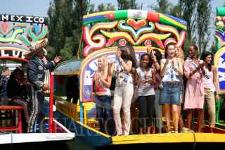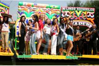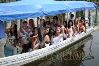 MÉXICO, D.F., 09MAYO2007.- Participantes en el certamen de belleza Miss Universo 2007 convivieron con los elementos de seguridad que las resguardaban, durante un recorrido por los canales y chinampas de Cuemanco. FOTO: ISAAC ESQUIVEL/CUARTOSCURO.COM
