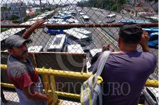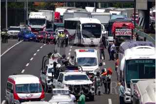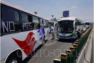 ESTADO DE MÉXICO, 01SEPTIEMBRE2023.- Choferes de la ruta Tizayuca bloquearon desde las 5 de la mañana de este viernes la carretera México-Pachuca en ambas direcciones, los inconformes exigen a las autoridades mayor seguridad en las rutas, así como reforzamiento vigilancia por parte de la Guardia Nacional. Cabe destacar que ambas partes tuvieron un acercamiento en una mesa de diálogo para buscar soluciones a los problemas planteados. FOTO: ROGELIO MORALES /CUARTOSCURO.COM