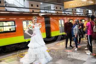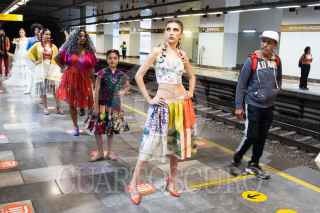 CIUDAD DE MÉXICO, 03SEPTIEMBRE2023.- Con motivo del vigésimo aniversario de "Vestidos que cuentan historias" el Metro Zapata fue testigo de una pasarela que se llevo a cabo en el transbordo de la Línea 12 a la Línea 3, diversos artistas y modelos mostraron 40 vestidos con sello mexicano por la diseñadora de Alta Costura, Diana Morlan. FOTO: MOISÉS PABLO/CUARTOSCURO.COM