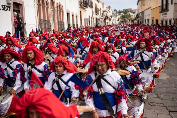 ZACATECAS, ZACATECAS, 03SEPTIEMBRE2023.- Como cada año, se llevo a cabo el tradicional desfile Morismas de Bracho, por las principales calles del centro histórico. Desde el jueves 31 de agosto hasta este domingo, mas de 19 mil zacatecanos, entre adultos mayores, jóvenes, mujeres, niños y bebés, participan en las representaciones teatrales de las batallas entre cristianos y musulmanes en honor al patrono católico San Juan Bautista, tradición que data desde 1830. FOTO: ADOLFO VLADIMIR /CUARTOSCURO.COM