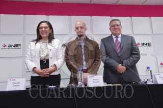 CIUDAD DE MÉXICO, 04SEPTIEMBRE2023.- Los consejeros Claudia Zavala Pérez, Arturo Castillo Loza, Carla Humphrey Jordan, y Alejandro Sosa Durán, Director Ejecutivo del Registro Federal de Electores y Comisión temporal del Voto de las y los Mexicanos Residentes en el Extranjero, ofrecieron conferencia de prensa para hablar del voto desde el extranjero para los Procesos Electorales Federales y Locales 2023-2024- FOTO: INE/CUARTOSCURO.COM