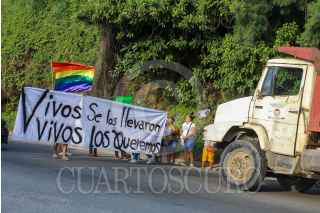 ACAPULCO, GUERRERO, 05SEPTIEMBRE2023.- Familiares y amigos de 6 jóvenes desaparecidos, entre ellos un activista de la diversidad sexual, se manifestaron en la carrera México-Acapulco, en el punto conocido como Paso Limonero, para exigir su presentación con vida. Los seis jóvenes se encuentran ausentes desde el pasado día viernes, todos estaban en un centro de rehabilitación, en la colonia Viste Hermosa, ubicada en la periferia de Acapulco. FOTO: CARLOS ALBERTO CARBAJAL/CUARTOSCURO.COM