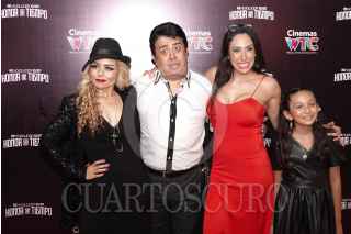 CIUDAD DE MÉXICO, 05SEPTIEMBRE2023.- Los actores Alejandra Franco, Arlls Eduardo Rico y Kira Pangabina Velasco durante la premier de la película Re-evolución 10/20 Honor sin Tiempo, realizada en Cinemex WTC. FOTO: GRACIELA LÓPEZ /CUARTOSCURO.COM