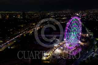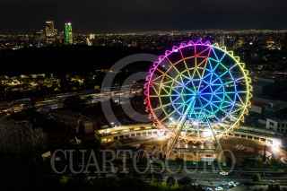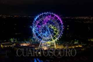 CIUDAD DE MÉXICO, 05SEPTIEMBRE2023.- Toma aérea de la Rueda de la Fortuna Aztlán 360 encendida por el jefe de gobierno de la Ciudad de México, Martí Batres Guadarrama, y José Miguel Bejos, presidente de Mota-Engil México, en el Parque Urbano Aztlán (antes Feria de Chapultepec) de la Segunda Sección del Bosque de Chapultepec. FOTO: GALO CAÑAS/CUARTOSCURO.COM