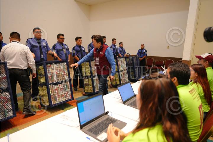 Mario Delgado, dirigente nacional de Morena, durante el proceso de recepción de papeletas del levantamiento de la encuesta con la que definirá quién será su candidato presidencial para el proceso electoral de 2024.