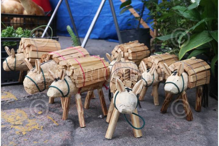 CUERNAVACA, MORELOS, 06SEPTIEMBRE2023.- Burros cargando madera, una de las artesanías que se ofrece en la tradicional feria del Santuario de Nuestra Señora de los Milagros de Tlaltenango. FOTO: MARGARITO PÉREZ RETANA / CUARTOSCURO.COM