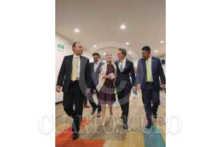 CIUDAD DE MÉXICO, 06SEPTIEMBRE2023.- Claudia Sheinaum llega al WTC para estar presente en el anunció de quien ganó las encuesta que designará a la candidata o candidato de Morena. La escoltan Alfonso Durazo, Jesús Sesma, Manuel Velasco, y Ricardo Gallardo. FOTO: CORTESÍA/CUARTOSCURO.COM
