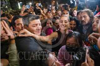 CIUDAD DE MÉXICO, 06SEPTIEMBRE2023.- Claudia Sheinbaum Pardo saluda a simpatizantes al retirarse del WTC tres conocer que ganó las encuestas para encabezar el proyecto presidencial de Morena con miras al 2024. FOTO: ROGELIO MORALES/CUARTOSCURO.COM