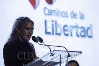 CIUDAD DE MÉXICO, 07SEPTIEMBRE2023.- Ninfa Salinas, presidenta de la Fundación Azteca durante la ceremonia de premiación Caminos de la Libertad para jóvenes y al terminar este se inauguro la exposición con las obras de los artistas premiados. El evento se llevó a cabo en el Museo Casa del Risco. FOTO: ANDREA MURCIA /CUARTOSCURO.COM