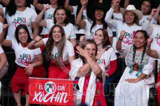 CIUDAD DE MÉXICO, 08SEPTIEMBRE2023.- Xóchitl Gálvez, candidata presidencial del Frente Amplio por México, en compañía de Alejandro Moreno Cárdenas, presidente del Partido Revolucionario Institucional (PRI) acudieron al mensaje para simpatizantes del partido y expresar su apoyo a Gálvez Ruiz. Entre los asistentes destacaron Enrique de la Madrid Cardero, Rubén Moreira, coordinador del PRI en Diputados, Carolina Viggiano, secretaria general del partido, así como representantes de la CTM; CNOP; CNC. FOTO: GALO CAÑAS/CUARTOSCURO.COM