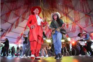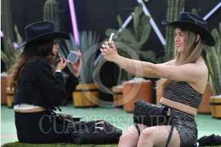 CIUDAD DE MÉXICO, 09SEPTIEMBRE2023.- Dos mujeres buscan una fotografía en un mural del cantante "Peso Pluma" durante el festival de música regional "Arre HSBC 2023" celebrado en las instalaciones del Autódromo Hermanos Rodríguez. FOTO: MARIO JASSO/CUARTOSCURO.COM