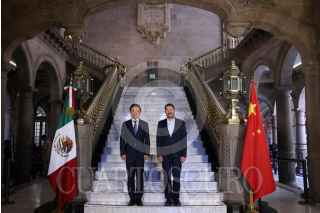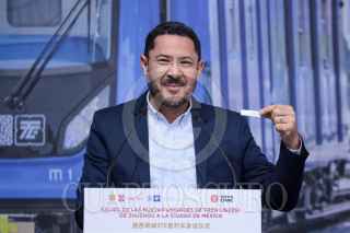 CIUDAD DE MÉXICO, 09SEPTIEMBRE2023.- Martí Batres Guadarrama, jefe de gobierno de la Ciudad de México, en compañía del embajador de China en Mexico, Zheng Run, dieron el banderazo de salida de los primeros nueve trenes ensamblados por la empresa china CRRC. FOTO: GOBIERNO CDMX/CUARTOSCURO.COM