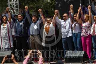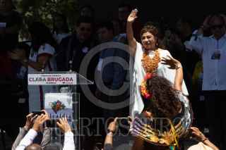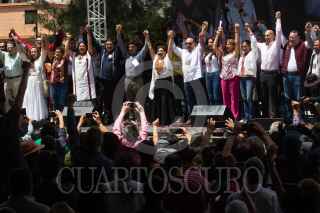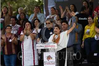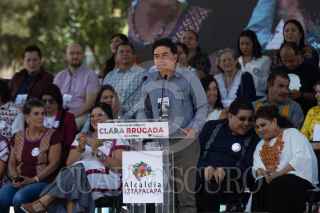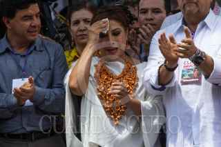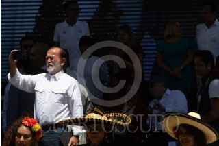 CIUDAD DE MÉXICO, 10SEPTIEMBRE2023.- El productor Epigmenio Ibarra graba con su celular durante el 5 Informe de Gobierno de Clara Brugada, en el Deportivo de Santa Cruz Meyehualco. FOTO: MOISÉS PABLO/CUARTOSCURO.COM