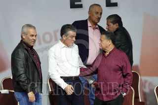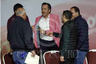CIUDAD DE MÉXICO, 10SEPTIEMBRE2023.- Alfredo Ramírez Bedolla, gobernador de Michoacán; Rutilio Escandón, gobernador de Chiapas; Julio Menchaca Salazar, gobernador de Hidalgo, conversaron durante su llegada al nombramiento como coordinadora de los Comités en Defensa de la Cuarta Transformación a Claudia Sheinbaum durante la Tercera Sesión Ordinaria de Morena. A tras de ellos Carlos Manuel Merino, gobernador de Baja California Sur y David Monreal, gobernador de Zacatecas. FOTO: GRACIELA LÓPEZ /CUARTOSCURO.COM