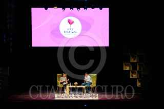 QUERÉTARO, QUERÉTARO, 10SEPTIEMBRE2023.- La escritora Fernanda Melchor en conversación con Julián Herbert, durante el el tercer día de actividades del Hay Festival Querétaro. FOTO: CÉSAR GÓMEZ/CUARTOSCURO.COM