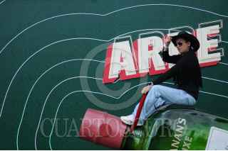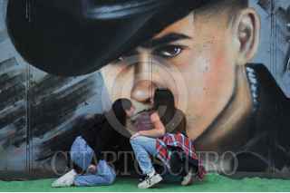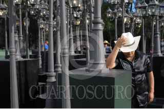 CIUDAD DE MÉXICO, 10SEPTIMBRE2023. - Una persona se toma una fotografía sobre el busto de un toro dentro del Festival ARRE HSBC 2023. FOTO: DANIEL AUGUSTO /CUARTOSCURO.COM