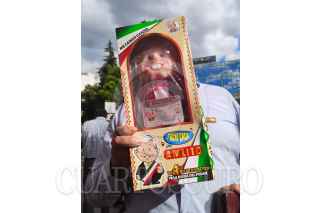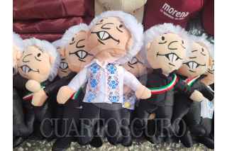 CIUDAD DE MÉXICO, 10SEPTIEMBRE2023.- Peluches de Andrés Manuel López Obrador, presidente de México, afuera de la Tercera Sesión Ordinaria de Morena FOTO: GRACIELA LÓPEZ /CUARTOSCURO.COM