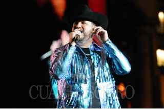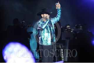CIUDAD DE MÉXICO, 10SEPTIMBRE2023. - Con un trago de alcohol, el cantante Edén Muñoz brindó con sus seguidores previo a interpretar una canción. FOTO: DANIEL AUGUSTO /CUARTOSCURO.COM