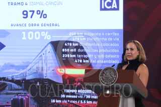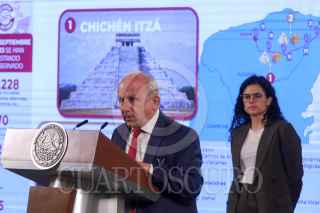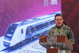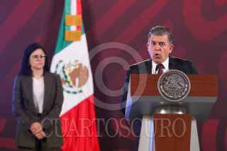 CIUDAD DE MÉXICO, 11SEPTIEMBRE2023.- Óscar David Lozano Águila, director general de Tren Maya, SA de CV., durante la mañanera. FOTO: MOISÉS PABLO/CUARTOSCURO.COM