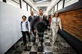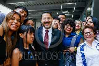 CIUDAD DE MÉXICO, 11SEPTIEMBRE2023.- Martí Batres, Jefe de Gobierno, y Alma Herrera Márquez, directora general del Instituto de Estudios Superiores "Rosario Castellanos", conviven con estudiantes de la recién inaugurada Unidad Académica Casco de Santo Tomás Casco de la Universidad Rosario Castellanos. FOTO: GOBIERNO DE LA CIUDAD/CUARTOSCURO.COM