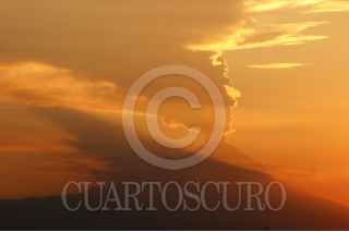 CUERNAVACA, MORELOS, 12SEPTIEMBRE2023.- La actividad del volcán Popocatépetl en las últimas horas ha sido constante, emitiendo fumarolas con contenido de vapor de agua y ceniza que se dirigen hacia el norte. Durante el amanecer se pudo observar colores y formas espectaculares del volcán, desde la capital de Morelos. FOTO: MARGARITO PÉREZ RETANA / CUARTOSCURO.COM