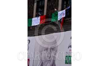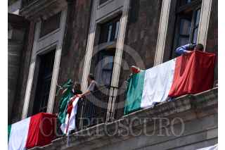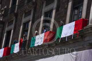 TOLUCA, ESTADO DE MÉXICO, 11SEPTIEMBRE2023.- Cambian banderas tricolor en los balcones de Palacio de Gobierno a unos días de llevarse a cabo la celebración de Independencia en la capital mexiquense. FOTO: CRISANTA ESPINOSA AGUILAR /CUARTOSCURO.COM