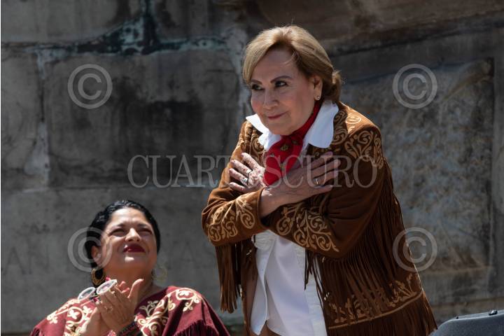 CIUDAD DE MÉXICO, 12SEPTIEMBRE2023.- La senadora tamaulipeca María Guadalupe Covarrubias Cervantes durante la ceremonia conmemorativa a la "Victoria de Tampico de 1829", en el Ángel de la Independencia. FOTO: MOISÉS PABLO/CUARTOSCURO.COM