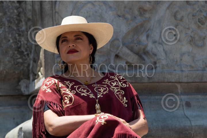 CIUDAD DE MÉXICO, 12SEPTIEMBRE2023.- Alejandra Frausto, secretaria de Cultura federal, durante la ceremonia conmemorativa a la "Victoria de Tampico de 1829", en el Ángel de la Independencia. FOTO: MOISÉS PABLO/CUARTOSCURO.COM