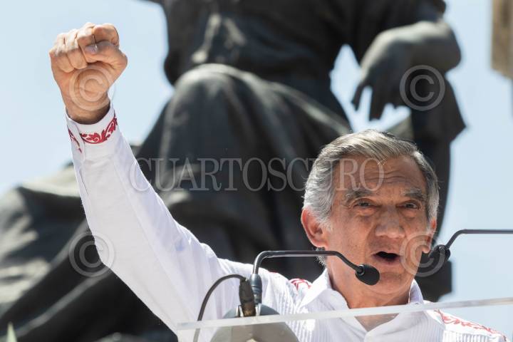 CIUDAD DE MÉXICO, 12SEPTIEMBRE2023.- Américo Villareal, gobernador de Tamaulipas, durante la ceremonia conmemorativa a la "Victoria de Tampico de 1829", en el Ángel de la Independencia. FOTO: MOISÉS PABLO/CUARTOSCURO.COM