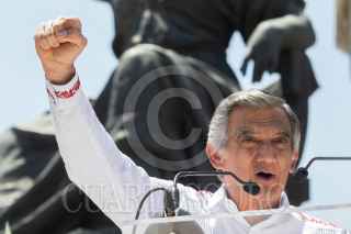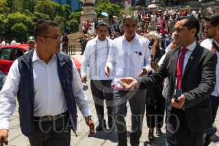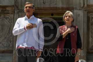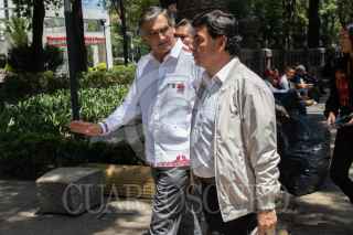 CIUDAD DE MÉXICO, 12SEPTIEMBRE2023.- Américo Villareal, gobernador de Tamaulipas, y Jesús Ramírez Cuevas, Vocero de la Presidencia, conversan sobre avenida Reforma, tras encabezar el evento "Victoria de Tampico de 1829", en el Ángel de la Independencia. FOTO: MOISÉS PABLO/CUARTOSCURO.COM