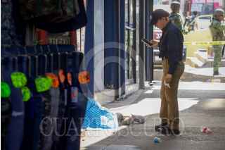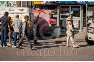 TIJUANA, BAJA CALIFORNIA, 12SEPTIEMBRE2023.- Un ataque armado se registró sobre el crucero de la 5 y 10 a la altura del puente peatonal del bulevar Lázaro Cárdenas donde quedó un hombre sin vida. Minutos más tarde sobre el bulevar Lázaro Cárdenas otro hecho violento dejó a otros dos hombres sin signos vitales a las afueras de un Oxxo. Tras estos asesinatos como daño colateral se informa que al menos tres personas heridas en condición amarilla fueron trasladados a la clínica 20 ubicada a unos metros de donde ocurrió el ataque. Elementos de la Policía Municipal que desplegaron un operativo por la zona, lograron la detención de un presunto responsable relacionado con al menos un hecho. FOTO: CUARTOSCURO.COM