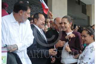 CIUDAD DE MÉXICO, 13SEPTIEMBRE2023. - Claudia Sheinbaum recibe el apoyo de los diputados morenistas al término de la reunión. FOTO: DANIEL AUGUSTO /CUARTOSCURO.COM