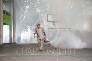 CAMPECHE, CAMPECHE 13 DE SEPTIEMBRE 2023.- Vectores de la secretaria de salud realizaron trabajos de termo nebulización en la escuela Presidente Ávila Camacho, esto para prevenir el dengue, zika, y chikungunya ante el incremento del dengue en la ciudad. Cabe señalar que en la península la secretaria de salud ha emitido una alerta epidemiológica preventiva con el objetivo de realizar acciones de prevención contra el mosquito transmisor. FOTO: MICHAEL BALAM/CUARTOSCURO.COM