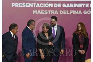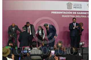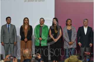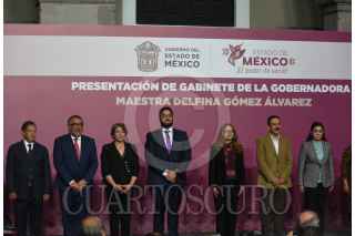TOLUCA, ESTADO DE MÉXICO, 13SEPTIEMBRE2023.- Higinio Martinez Proyectos Especiales, Horacio Duarte Olivares, Secretario General de Gobierno, Andrés Andrade Téllez, Secretario de Seguridad, Macarena Montoya Olvera, Secretaria de Salud, Miguel A. Hernández Espejel, Secretario de Educación, Ciencia y Tecnología e Innovación, Laura González Hernández, Secretaria de Desarrollo Económico formarán parte del gabinete de Delfina Gómez Álvarez Gobernadora Electa del Estado de México. FOTO: CRISANTA ESPINOSA AGUILAR /CUARTOSCURO.COM