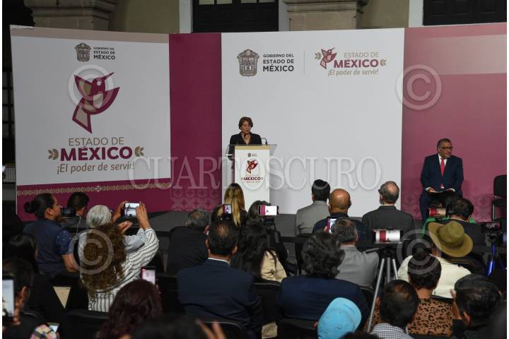 TOLUCA, ESTADO DE MÉXICO, 13SEPTIEMBRE2023.- Delfina Gómez Álvarez Gobernadora Electa del Estado de México sostuvo un encuentro con medios de comunicación en Palacio de Gobierno, a un día de su toma de protesta, en donde dio a conocer la imagen institucional del Gobierno del Estado de México así como los integrantes de su gabinete. FOTO: CRISANTA ESPINOSA AGUILAR /CUARTOSCURO.COM