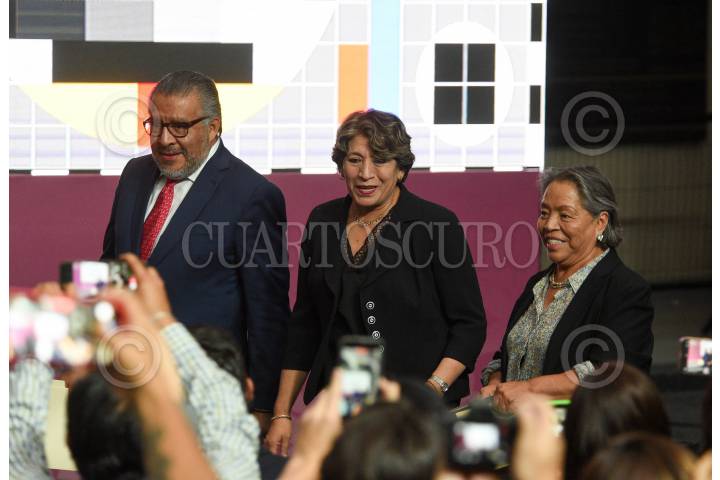 TOLUCA, ESTADO DE MÉXICO, 13SEPTIEMBRE2023.- Delfina Gómez Álvarez Gobernadora Electa del Estado de México sostuvo un encuentro con medios de comunicación en Palacio de Gobierno, a un día de su toma de protesta, en donde dio a conocer la imagen institucional del Gobierno del Estado de México así como los integrantes de su gabinete. FOTO: CRISANTA ESPINOSA AGUILAR /CUARTOSCURO.COM