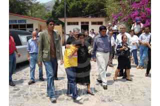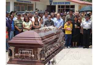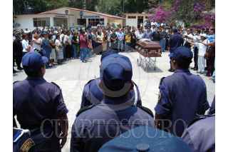 CHILPANCINGO, GUERRERO, 10MAYO2007.- Aspecto general del homenaje postumo rendido al director de la policia preventiva municipal Artemio Mejia Chavez "cobra" en el cuartel de la corporacion que dirigia esto luego de que fuera ejecutado al ser emboscado por un grupo armado el pasado miercoles cerca de su domicilio en la colonia El Tomatal. En la imagen familiares del jefe policiaco asi como funcionarios municipales como el alcalde Mario Moreno Arco (segundo de der a izq) y el diputado local del PRI y presidente de la comision de seguridad publica en el Congreso local Humberto Calvo Memije (primero de der a izq) durante el homenaje al jefe policiaco. FOTO: OSCAR ALVARADO/CUARTOSCURO.COM